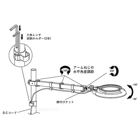 スタンドルーペ ENVL-SA 6XAR 6倍 LED照明拡大鏡 スイングアーム式 クランプ取付式 虫眼鏡 検品 両手が使える 工業用 オーツカ光学スペック