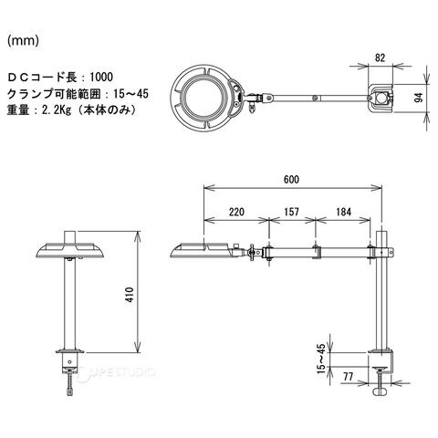 スタンドルーペ ENVL6K-SA 2X 2倍 フルスペクトル LED照明拡大鏡 スイングアーム式 クランプ取付式 虫眼鏡 検品 両手が使える 工業用 オーツカ光学スペック