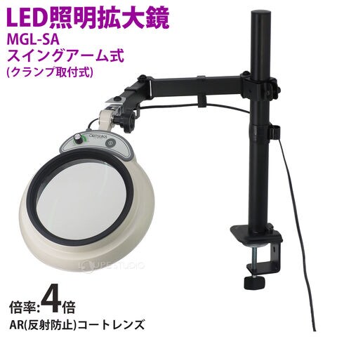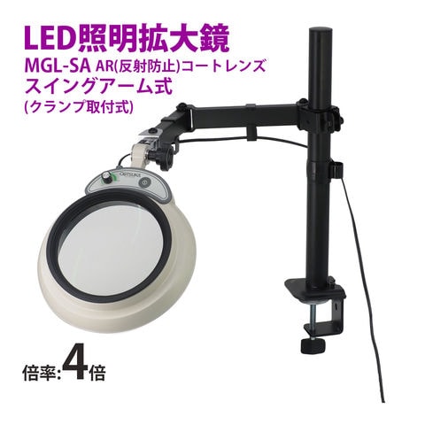 スタンドルーペ MGL-SA 4XAR 4倍 LED照明拡大鏡 スイングアーム式 クランプ取付式 虫眼鏡 検品 両手が使える 工業用 オーツカ光学