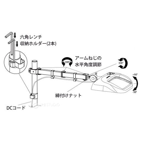 スタンドルーペ用 OLIGHT5-SA レンズ無 LED照明付拡大鏡 スイングアームタイプ クランプ取付 オーツカ光学スペック