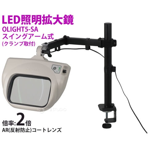 スタンドルーペ OLIGHT5-SA 2XAR 2倍 LED照明付拡大鏡 スイングアームタイプ クランプ取付 虫眼鏡 検品 両手が使える 工業用 オーツカ光学