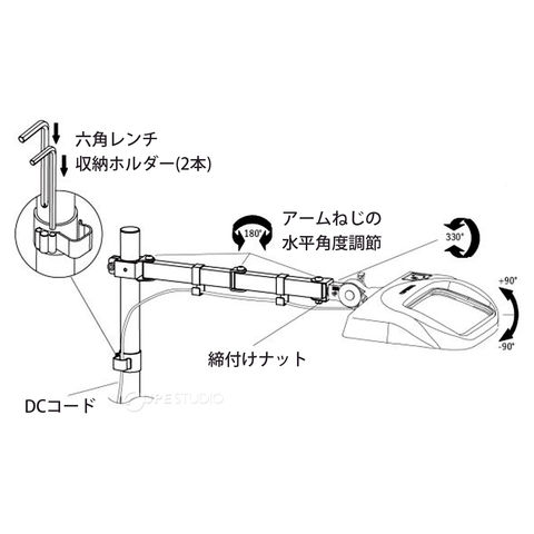 スタンドルーペ OLIGHT5-SA 2XAR 2倍 LED照明付拡大鏡 スイングアームタイプ クランプ取付 虫眼鏡 検品 両手が使える 工業用 オーツカ光学スペック