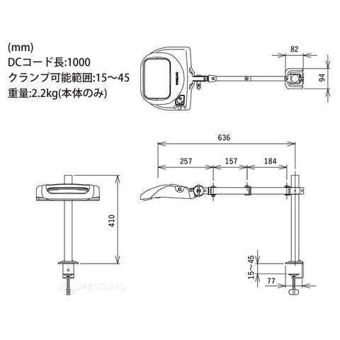 スタンドルーペ OLIGHT6-SA 2XAR 2倍 有機EL 照明拡大鏡 スイングアーム式 クランプ取付式 虫眼鏡 検品 両手が使える 工業用 オーツカ光学スペック