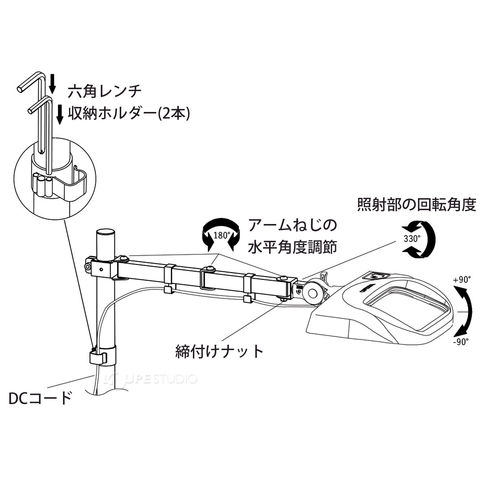 スタンドルーペ OLIGHT6-SA 358AR 3倍 5倍 8倍 有機EL 照明拡大鏡 スイングアーム式 クランプ取付式 虫眼鏡 検品 両手が使える 工業用 オーツカ光学スペック