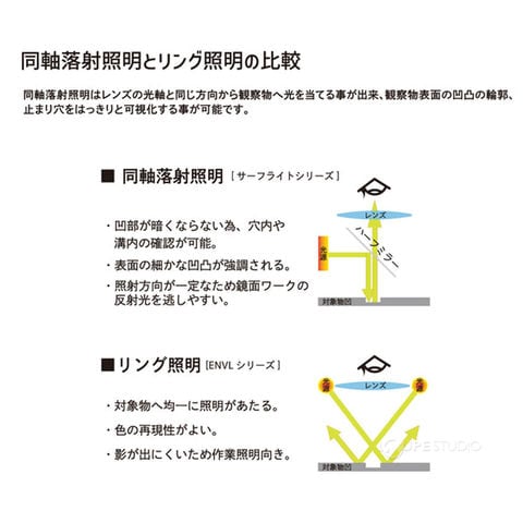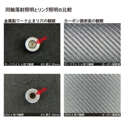同軸落射照明とリング照明の比較