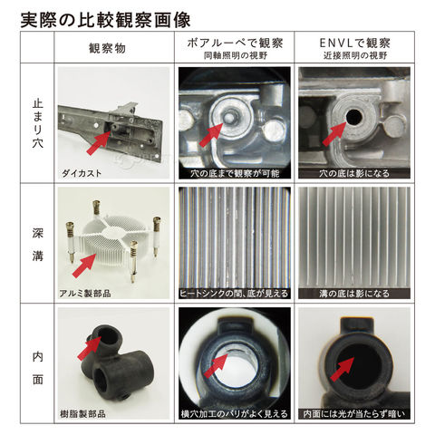 • 照明に同軸照明を採用し、人間の視線と照明の光軸を同じにする事で、光の届かない穴内の検査を可能に致しました。