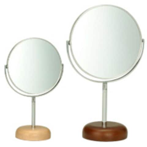台座に品質の良いブナの無垢材を使用した、ナチュラルな卓上鏡です。鏡の直径12cm。裏面は2倍率の拡大鏡。