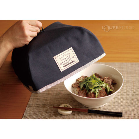 保温保冷シート付きのフードカバーです。お料理を温かく保ち、ほこりや乾燥から守ります。骨組みのない布製なので傘式のように壊れる心配もなく、コンパクトに収納できます。また、表のタグにはメモも差し込めます。 温かい食事にメッセージを添えてどうぞ!