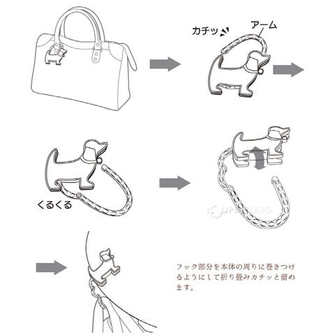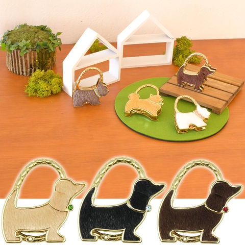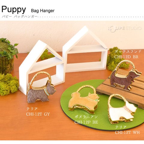 子犬デザインのバッグチャームスタイルのバッグハンガー。