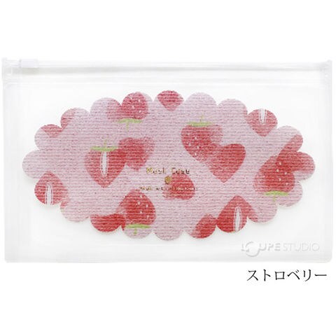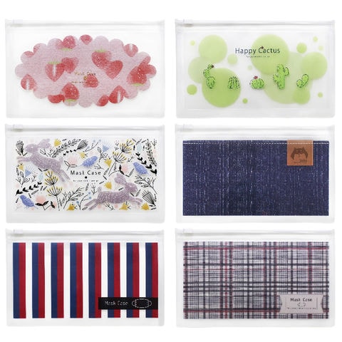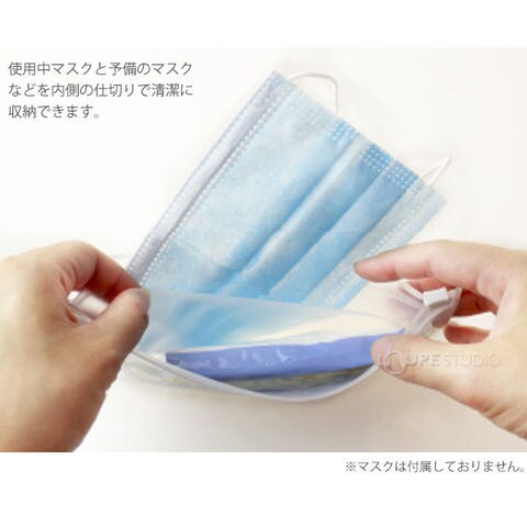 透け感のある素材に柄をプリントし、すっきりとしたデザインとなっております。内側に抗菌素材を使用しており、使用中のマスクを一時的に入れておくケースとして使えます。シールチャックになっていてゴミやホコリが入りにくく、薄型でかさばらずに持ち運べます。