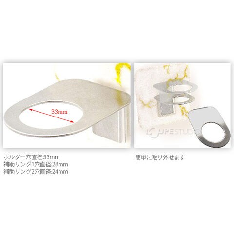 | 商品サイズ | W95×H95×D75mm ホルダー穴直径/33mm 補助リング1穴直径/28mm 補助リング2穴直径/24mm |