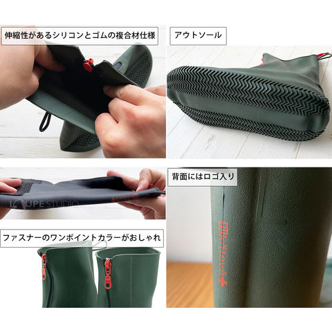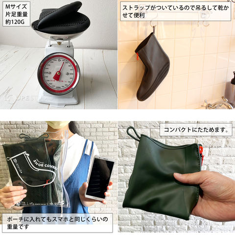 靴の上からかぶせるので長靴へ履き替えるのとは違い、履いていた靴を持ち運ぶ手間が省けます。