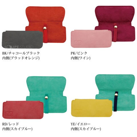 表生地の合皮レザーは落ち着いた風合いのものを採用し、内生地とはツートンカラーになっています。手ぶら派のあなたの為のメガネケース。