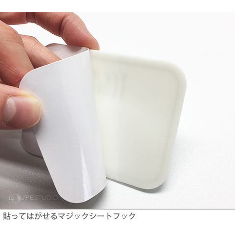 どんなところにも馴染むシンプルな白無地シートで、揃えて使うとすっきりした空間になります。ツルツルした平らな面ならどこにでも貼れるので、バスルーム・洗面所・キッチンなどの水周りなどに簡単に収納を増やせます。水に強いだけでなく、はがし跡が残りにくいので、何度も気軽に貼り替えられます。磁石が付かない場所でもツルツルしていると使えます。収納スペースの少ないワンルームのお部屋にも、物が多い家族暮らしにも便利なアイテムです。