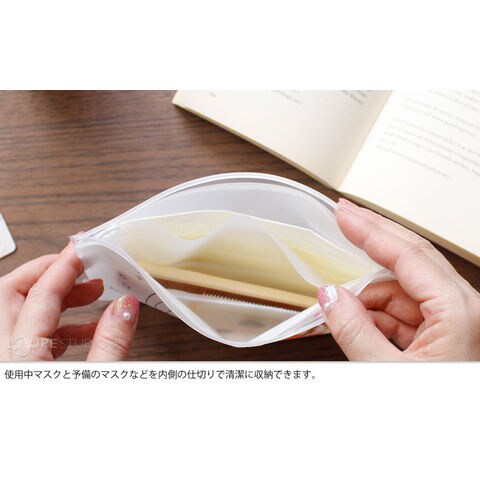 内側に抗菌素材を使用しているので、マスクを清潔に保ち、シールチャックでかさばらずに持ち運べます。