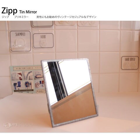 鏡 化粧鏡 日本製 インテリア プレゼント 化粧 メイク 卓上ミラー 雑貨 おしゃれ ヴィンテージ ジップ ブリキミラー LLサイズ クリスマスプレゼント クリスマススペック