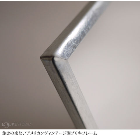 ブリキのフレームと背面のハードボードの組み合わせで素材感にこだわったヴィンテージカジュアルなミラーです。