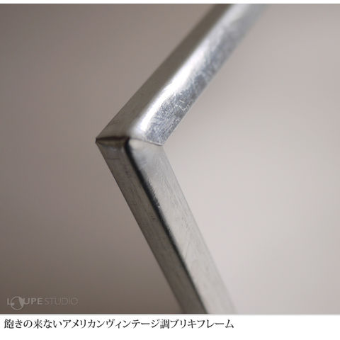 ブリキのフレームと背面のハードボードの組み合わせで素材感にこだわったヴィンテージカジュアルなミラーです。