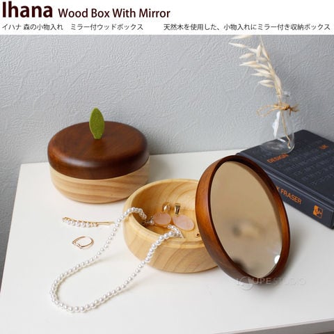 小物入れ 木製 ふた付き イハナ ミラー付ウッドボックス おしゃれ インテリア トレイ クリスマスプレゼント クリスマススペック