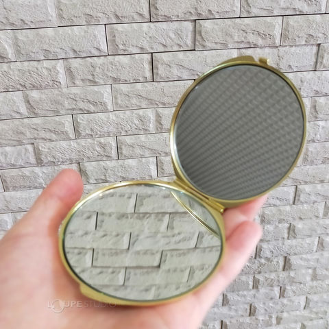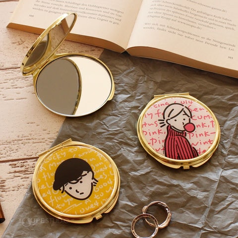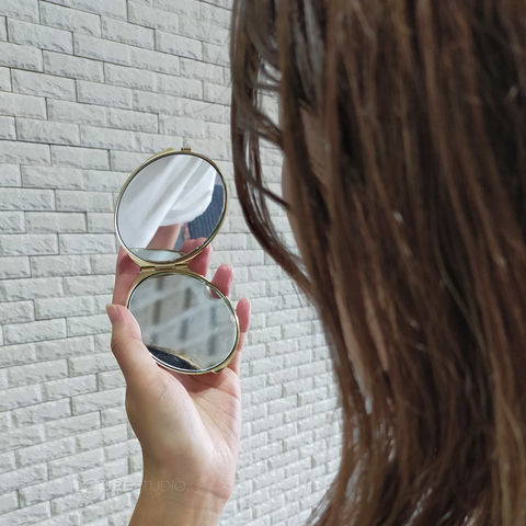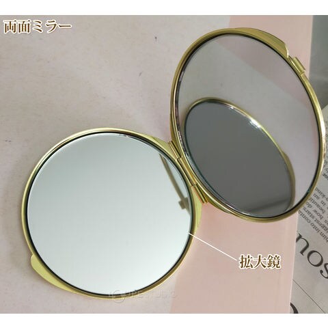 平鏡と拡大鏡の二面仕様なのでメイク直しにも便利。かさばらない小ぶりなサイズ感でお出かけにもぴったりです。
