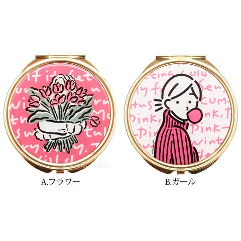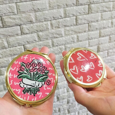 こんもりした透明樹脂盛りがかわいいコンパクトミラーです。