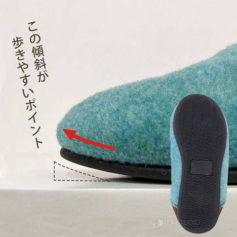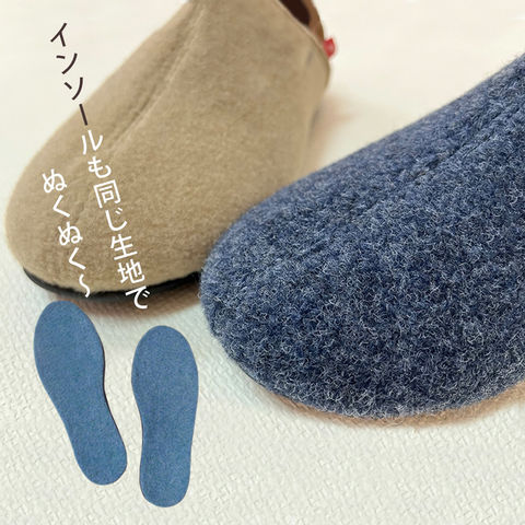 中敷も同じフェルトを使用しているので保温性が高く、くつ底はラバーで滑り止めになってるため静かに歩きやすいです。