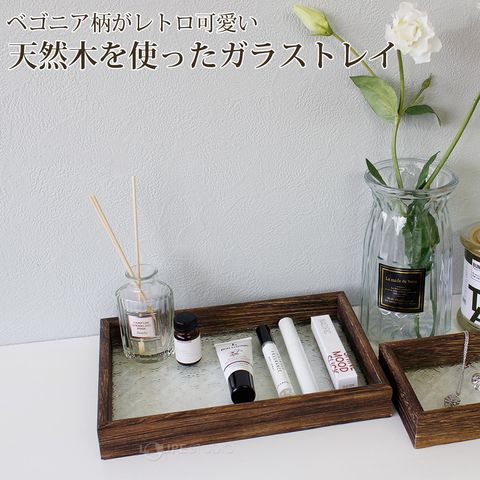 ベゴニア レトロガラストレイ M 小物入れ 小物ケース トレー おしゃれ 収納 入れ物 木製 ガラス製 プレゼント ギフト 結婚 引っ越し 祝い インテリア