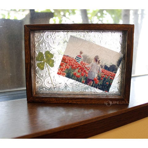天然木とレトロな型板ガラスが融合したフォトフレーム。