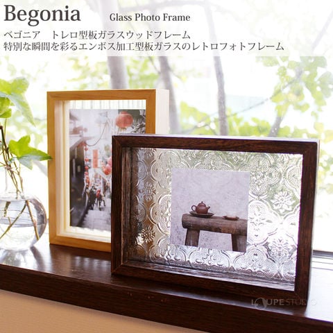 フォトフレーム 写真立て おしゃれ かわいい ベゴニア レトロガラス 木製 ガラス 卓上 インテリア 雑貨 オブジェ スクエア 四角 長方形 プレゼント ギフト クリスマスプレゼント クリスマススペック