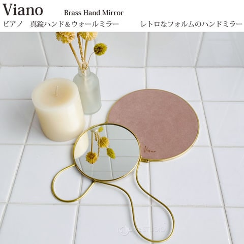 鏡 ミラー ビアノ 真鍮ハンド&ウォ-ルミラーS 壁掛け ハンドミラー 手鏡 おしゃれ かわいい アンティーク 丸型 小さい メイク 化粧 スリム シンプル 円 クリスマスプレゼント クリスマス