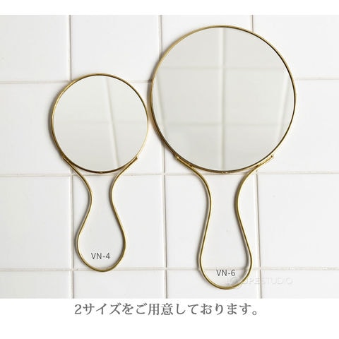 このミラーは、手鏡としても壁掛け鏡としても使用できるため、非常に実用的です。サイズはSとLの2種類があり、お部屋のスペースや用途に合わせて選べます。