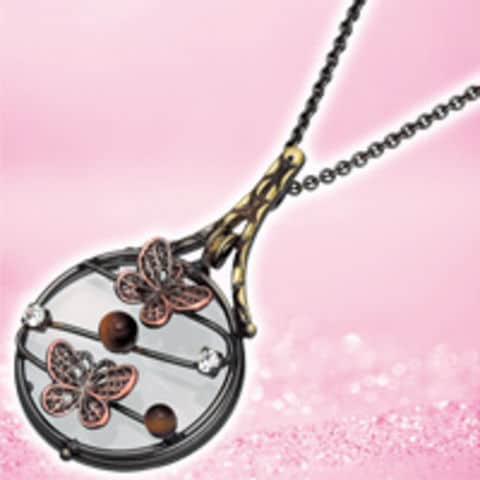 ブレストルーペ RF-6蝶 フリップアップ式 とら目石 スワロフスキー ペンダントルーペ Z7004 パール PEARL 拡大鏡 虫眼鏡 虫めがね ルーペ ペンダント アクセサリー ギフト プレゼント 贈り物