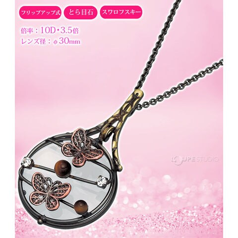 ブレストルーペ RF-6蝶 フリップアップ式 とら目石 スワロフスキー ペンダントルーペ Z7004 パール PEARL 拡大鏡 虫眼鏡 虫めがね ルーペ ペンダント アクセサリー ギフト プレゼント 贈り物スペック