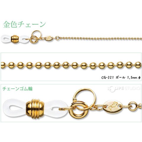 メガネチェーン 金色チェーン CG-321 ボール 1.5mmφ パール 眼鏡チェーン パーツ ゴールド レディース かわいい ギフト プレゼントスペック
