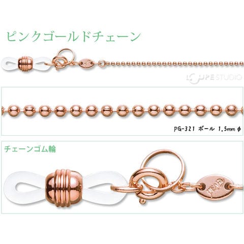 メガネチェーン ピンクゴールドチェーン PG-321 ボール 1.5mmφ パール 眼鏡チェーン パーツ レディース かわいい ギフト プレゼントスペック