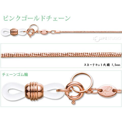 メガネチェーン ピンクゴールドチェーン スネークカット丸線 1.5mm Z5450 眼鏡チェーン パーツ レディース メンズ 男性用 女性用 かわいい ギフト プレゼントスペック