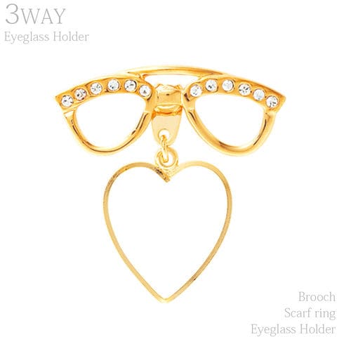 メガネホルダー グラスホルダー 3WAY 眼鏡 ブローチ ピンバッチ ピンバッジ レディース ゴールド ハート スカーフリング めがねホルダー おしゃれスペック