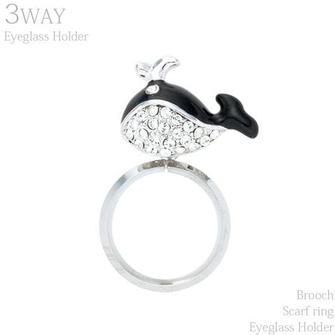 メガネホルダー くじら グラスホルダー 3WAY 眼鏡ホルダー メガネブローチ ピンバッチ ピンバッジ レディース シルバー スカーフリング めがねホルダー おしゃれ