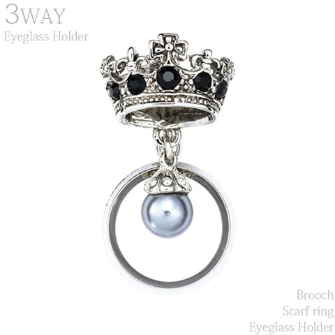 メガネホルダー グラスホルダー 3WAY 王冠 眼鏡 ブローチ ピンバッチ ピンバッジ レディース シルバー スカーフリング クラウン めがねホルダー おしゃれ