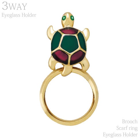 メガネホルダー 3WAY カメ かめ 亀 グラスホルダー 眼鏡 ブローチ ピンバッチ ピンバッジ レディース ゴールド スカーフリング めがねホルダー おしゃれ