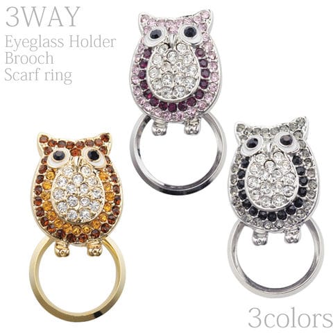 メガネホルダー グラスホルダー 3WAY フクロウ 眼鏡 ブローチ ピンバッチ ピンバッジ ふくろう 縁起物 めがねホルダー おしゃれ