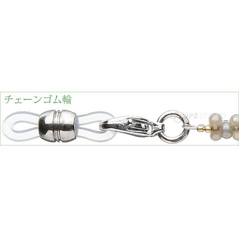 チェーンの長さは、ゴム輪の先から反対側のゴム輪の先までです。