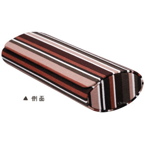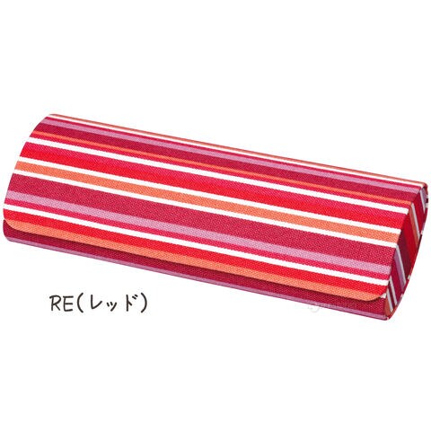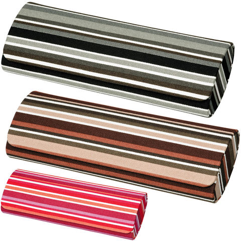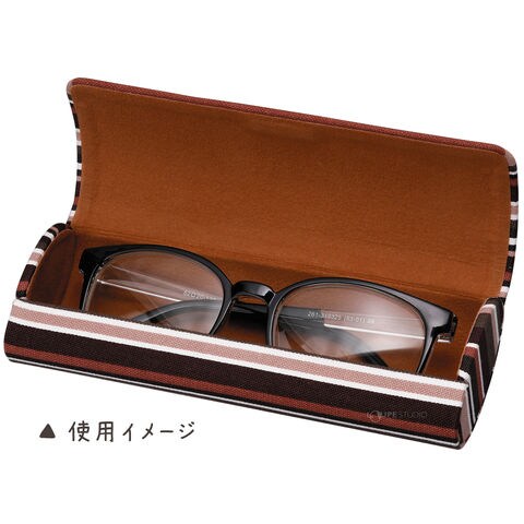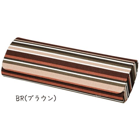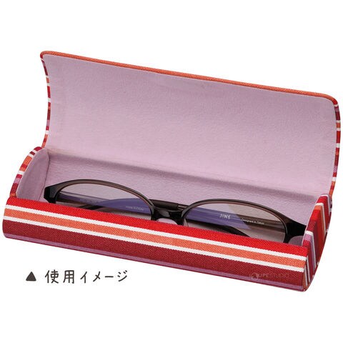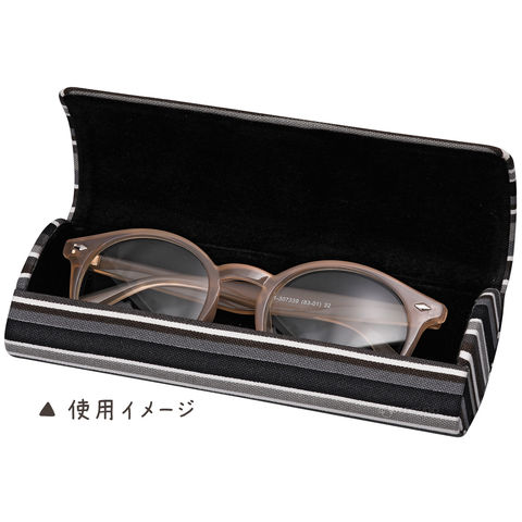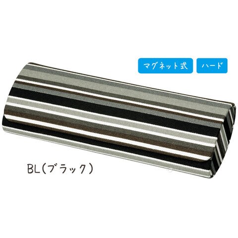 - モダンなストライプ柄のコットン生地を巻いた、フタも硬いハードタイプのメガネケース