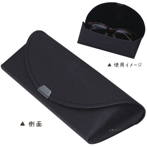 - レザー調の合皮生地を巻き付けた、蓋の部分が柔らかなセミハードタイプのメガネケース
