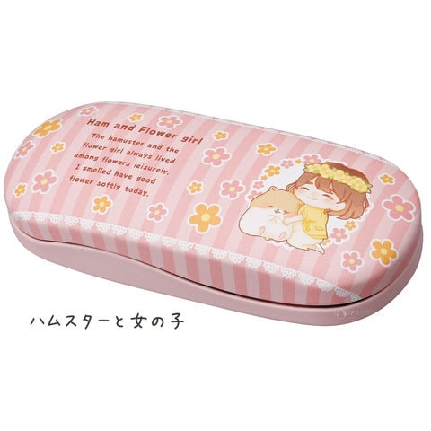 - 可愛らしいイラストがデザインされた合皮を巻いた、ハードタイプのメガネケース