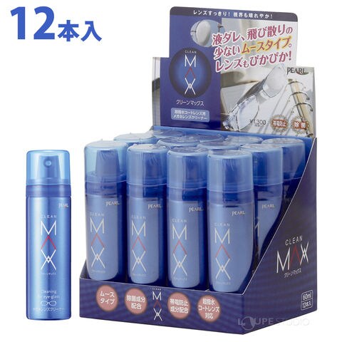 メガネクリーナー クリーンマックス 12本入 メガネ レンズクリーナー メガネ用品 メガネ拭き 除菌 帯電防止 ムースタイプ