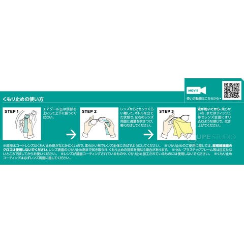 ※くもり止めはメガネレンズ専用です。水中メガネ、コンタクトレンズ等には使用できません。くもり止め加工やミラーコートの施してあるレンズには使用できません。