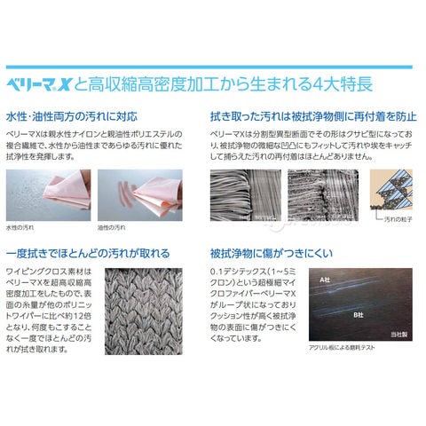 | 素材 | ナイロン15%(吸水性)、ポリエステル85%(吸油脂性) |