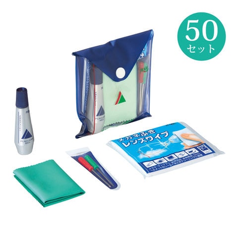 セット内容プラクリーンミニ(クリーナー)、レンズワイプ、超極細繊維メガネクロス(15×15cm)、ドライバー+-(ミニロング)