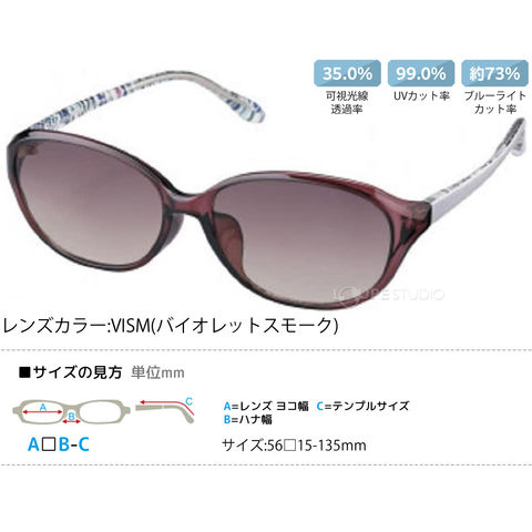 | ブルーライトカット率 | 【PKBR(ピンクブラウン)】約67% 【VISM(バイオレットスモーク)】約73% |
